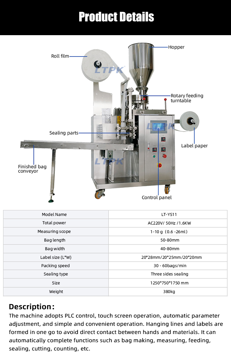 Thread & Tag Design: Specially designed for tea bags with thread and label, perfectly matching traditional tea/herbal tea packaging needs.