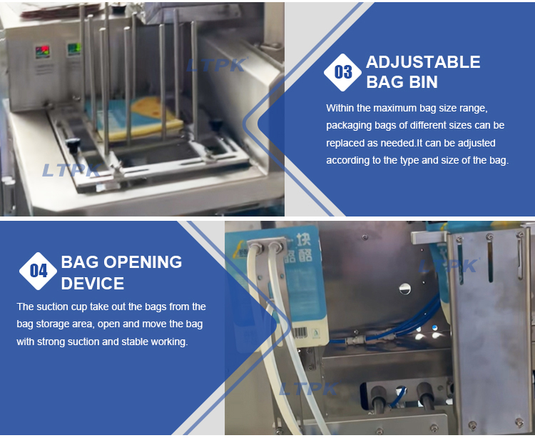 5. High Efficiency: Automatic bag feeding and sealing, greatly improving production efficiency and reducing labor costs.